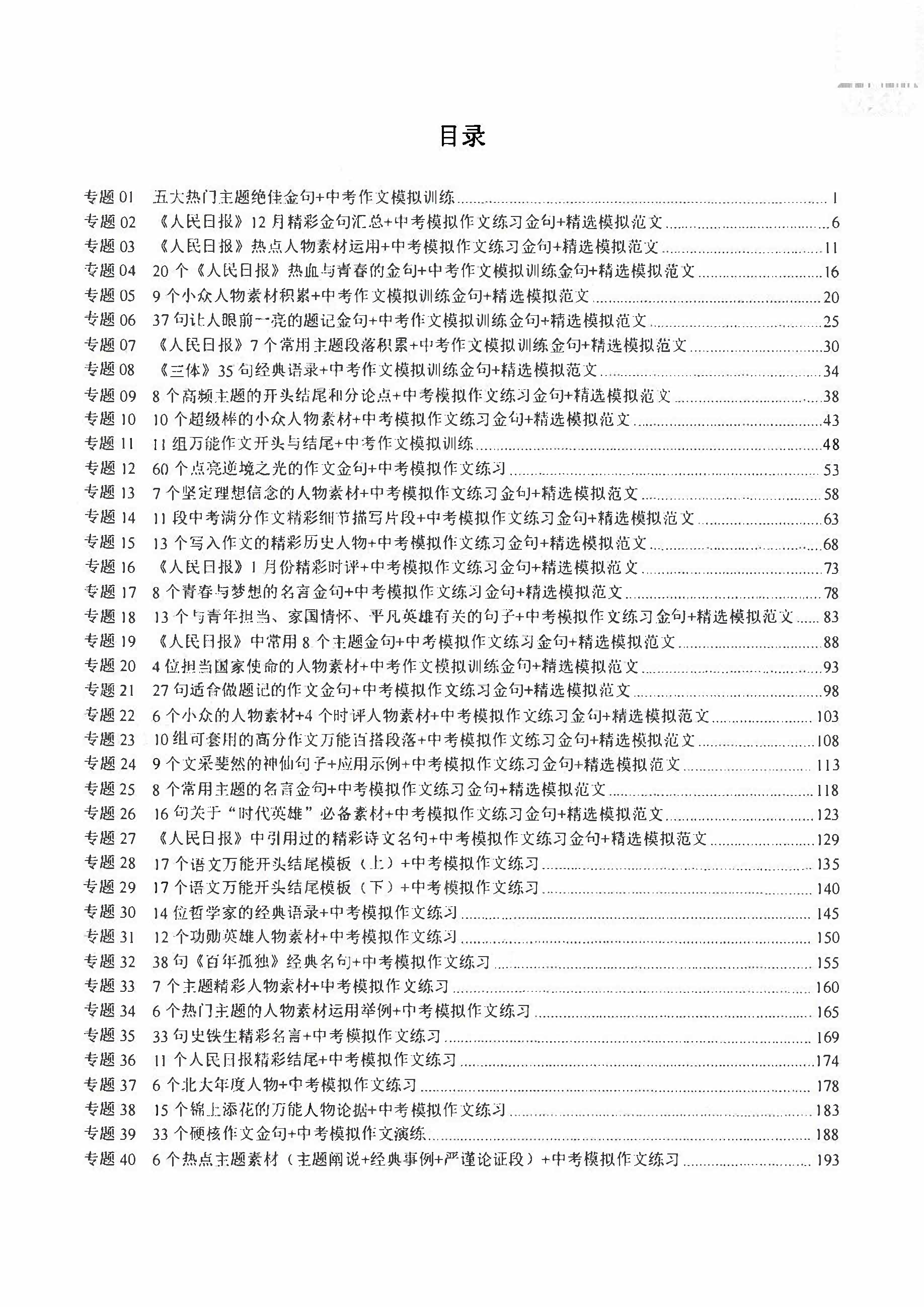 初中语文实用作文金句+精选模拟范文(共199页40个专题)