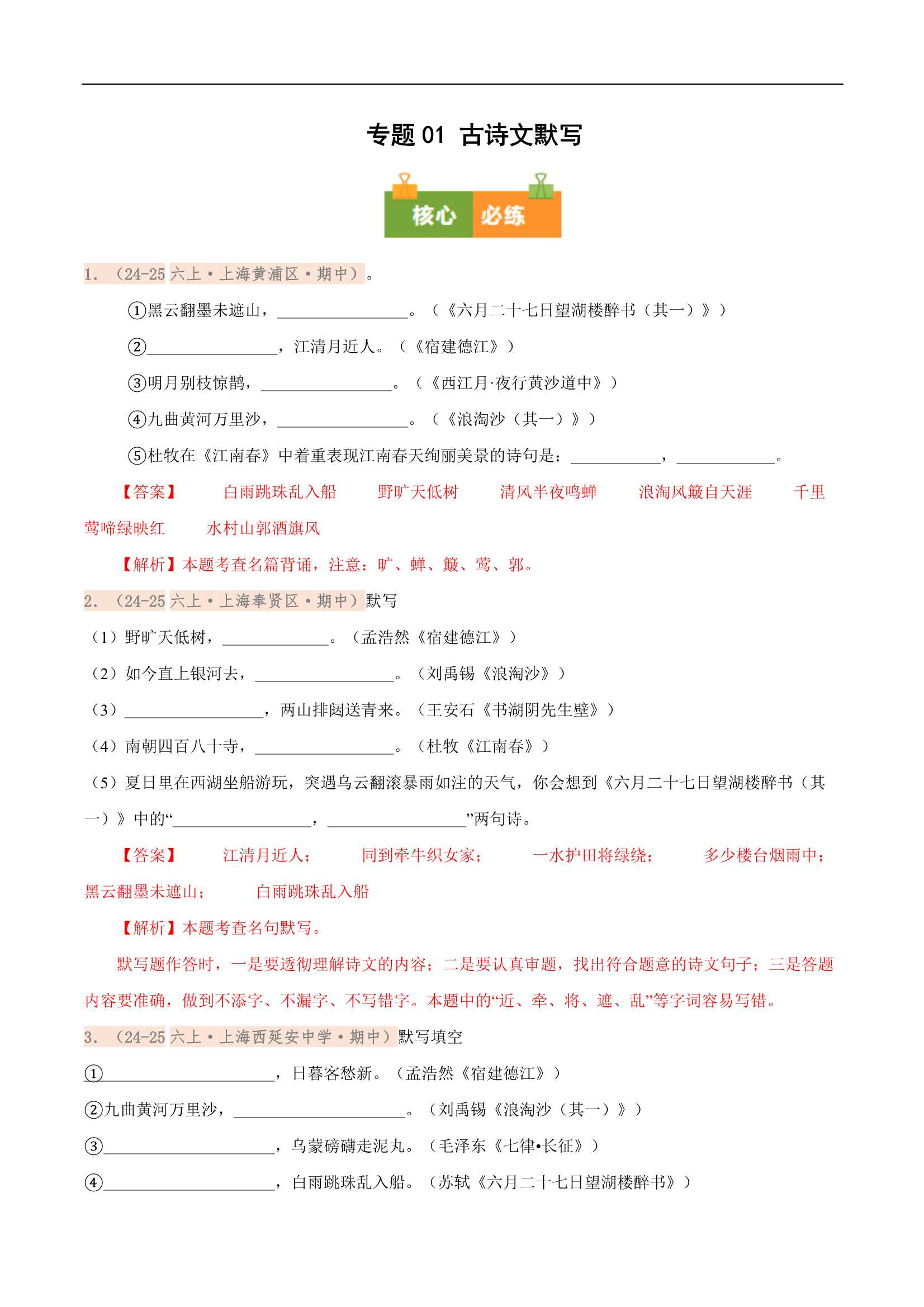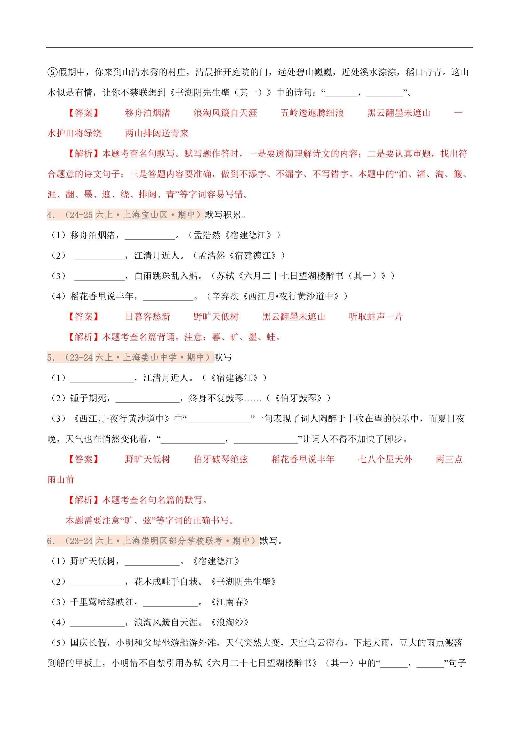 2025-2026学年上海六(上)语文期中真题分类汇编