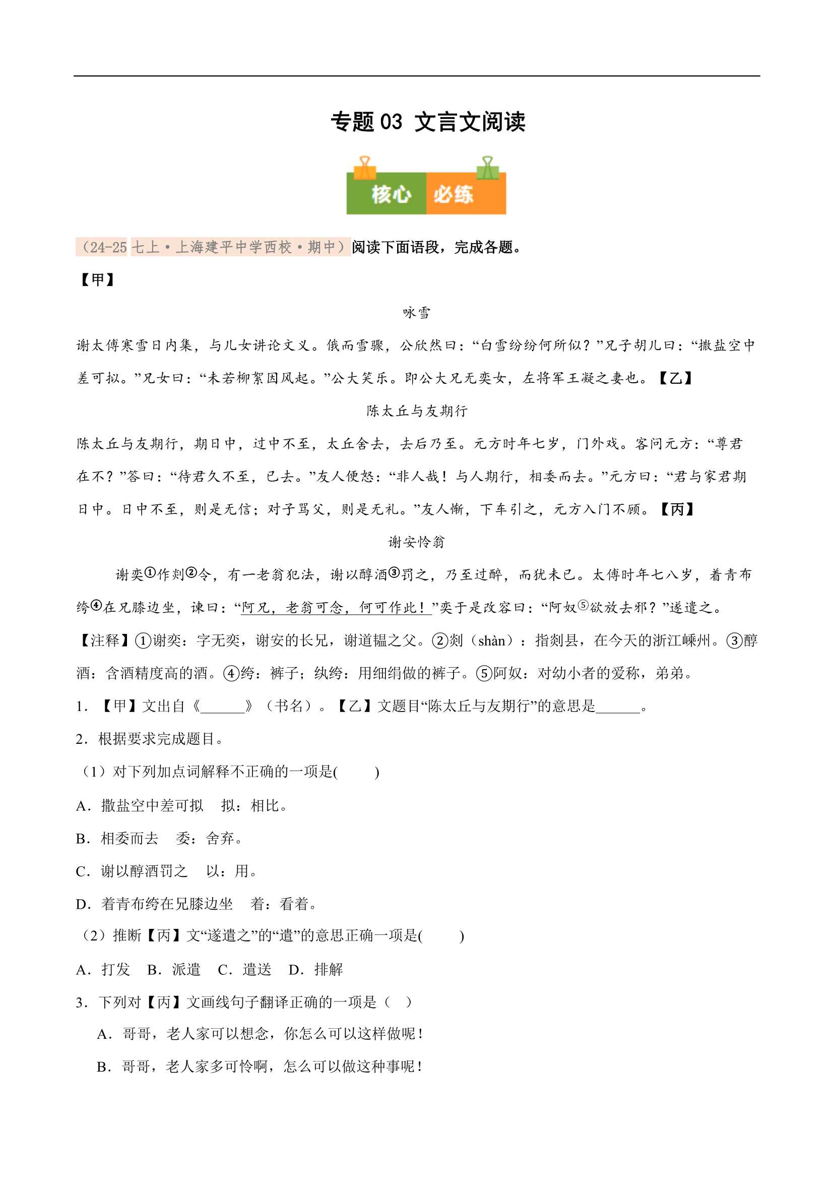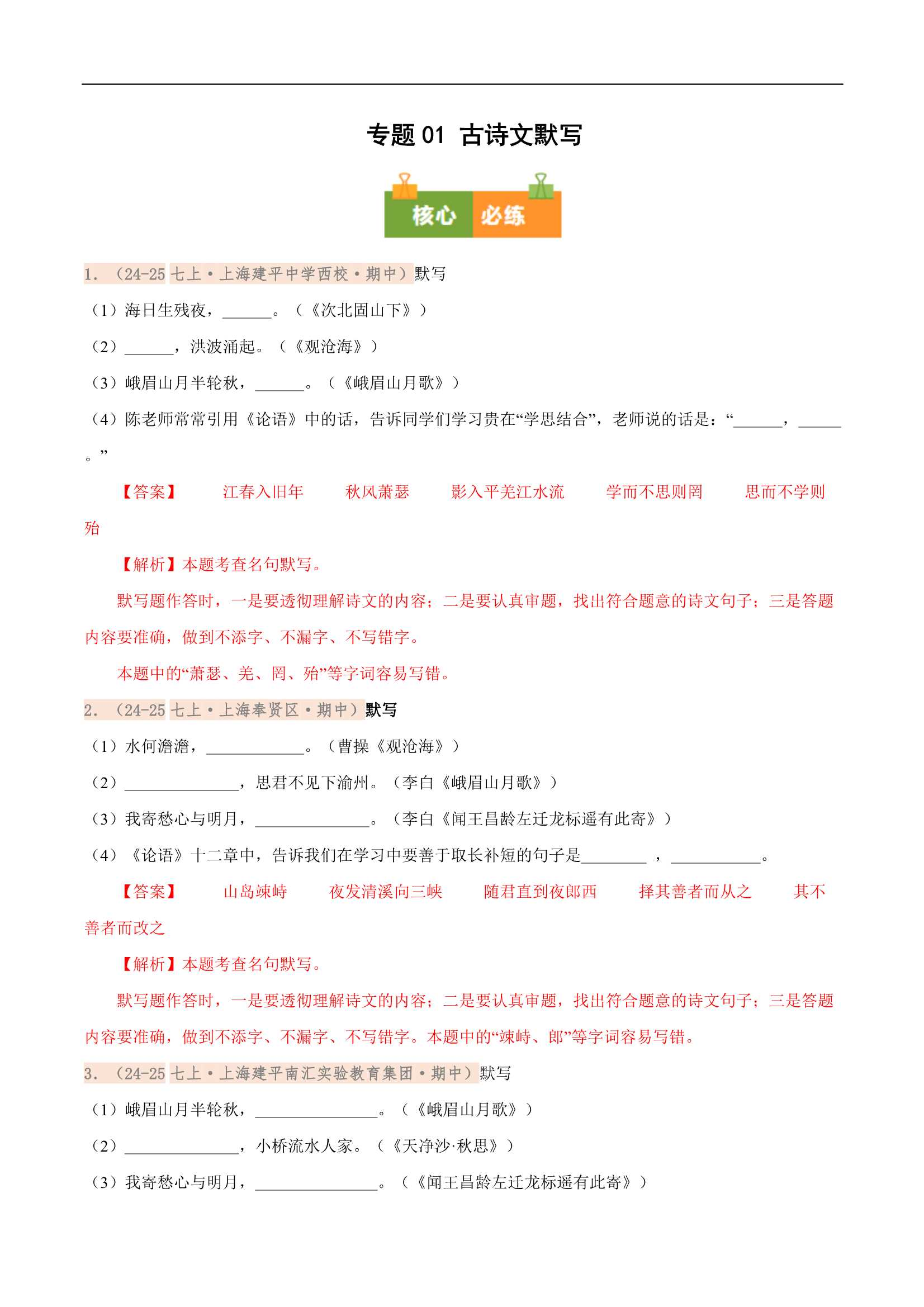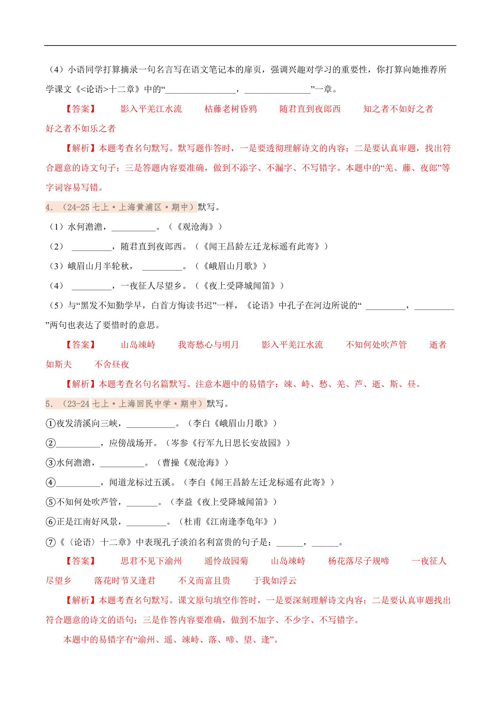 2025-2026学年上海七(上)语文期中真题分类汇编
