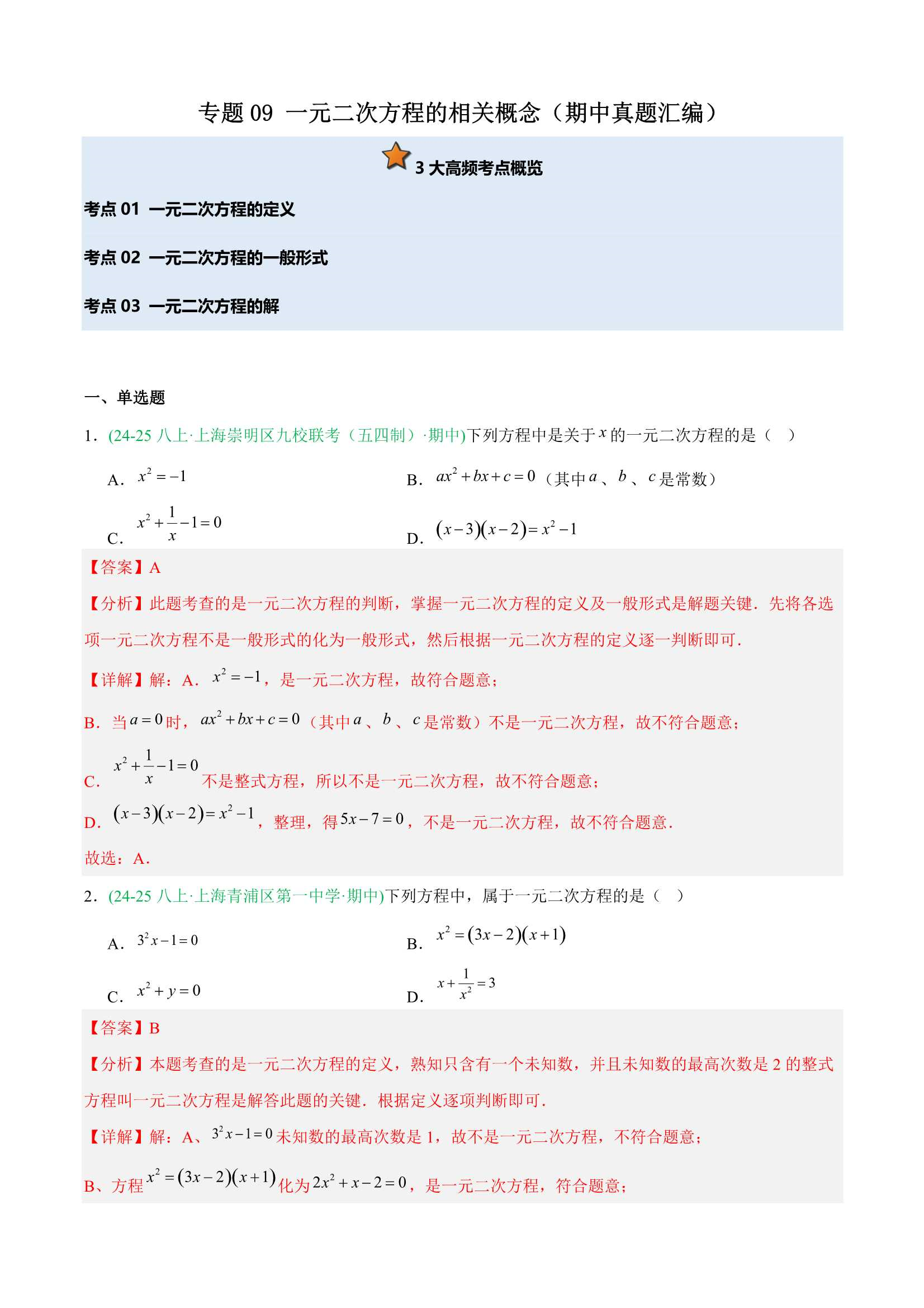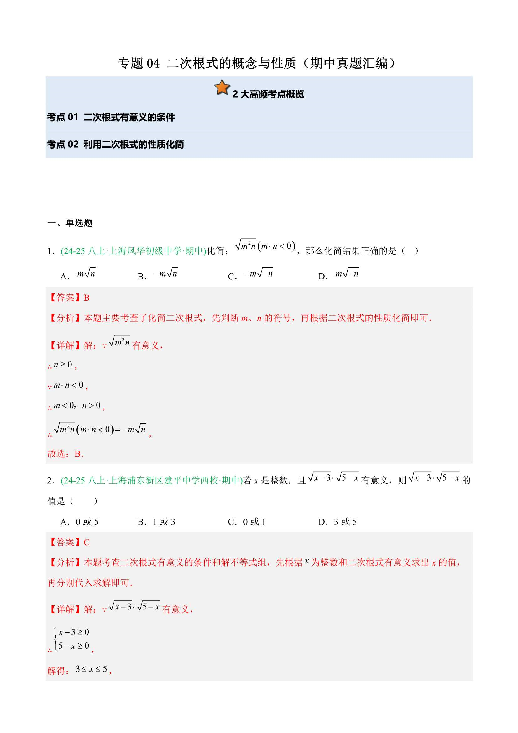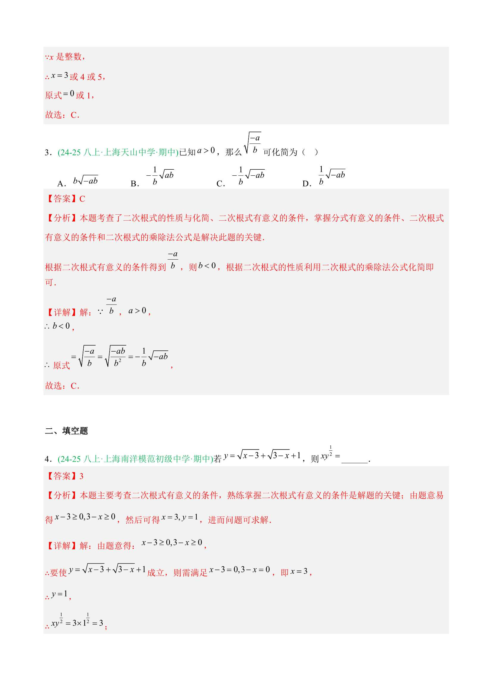 2025-2026学年上海八(上)数学期中真题分类汇编