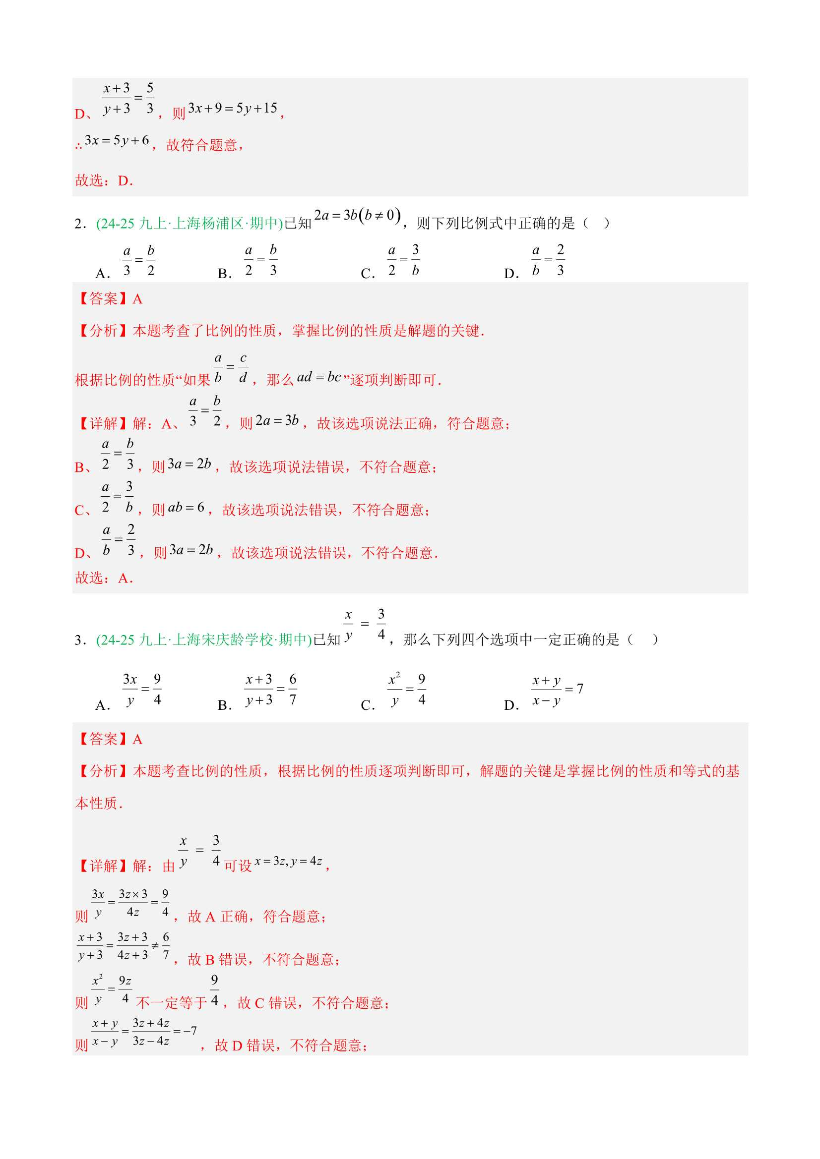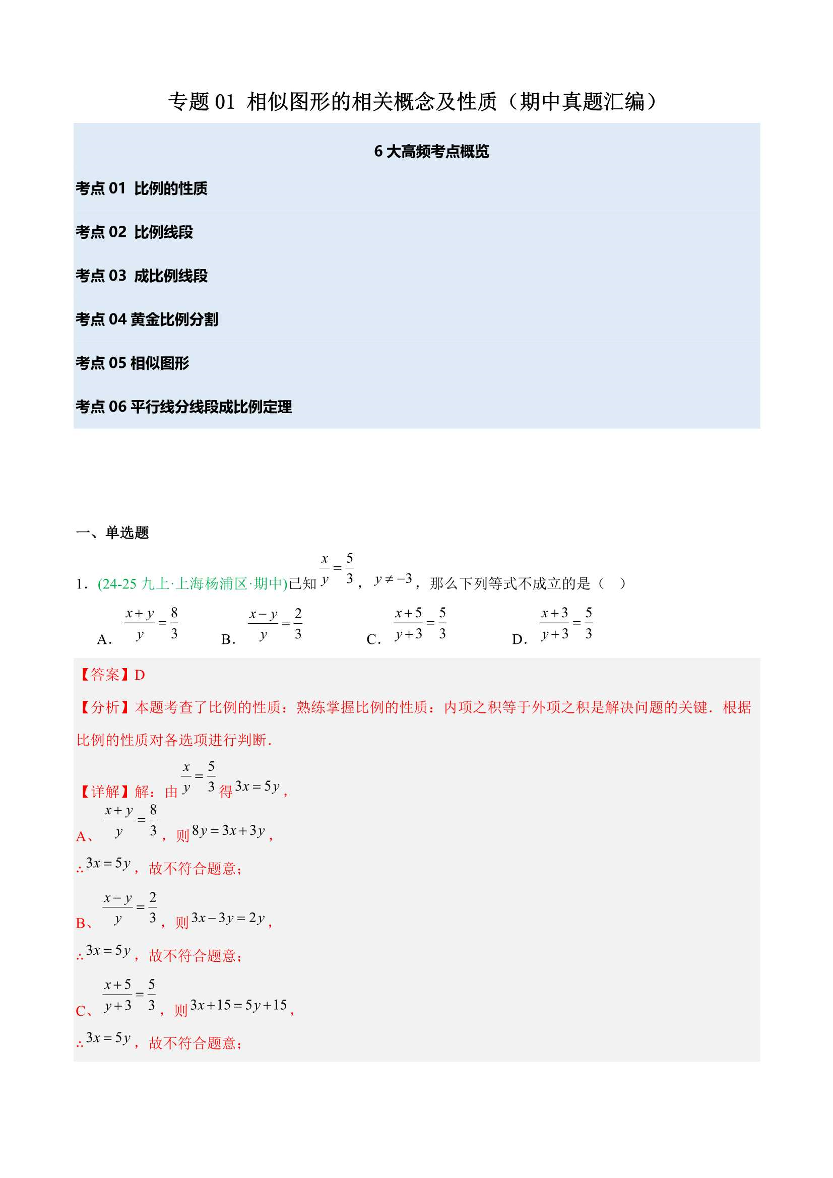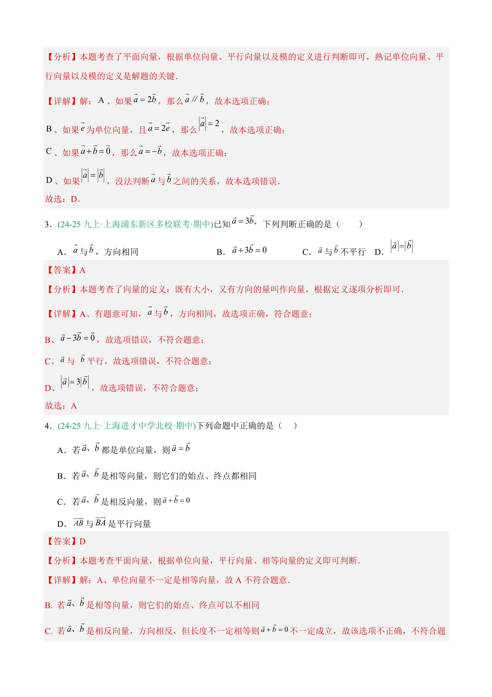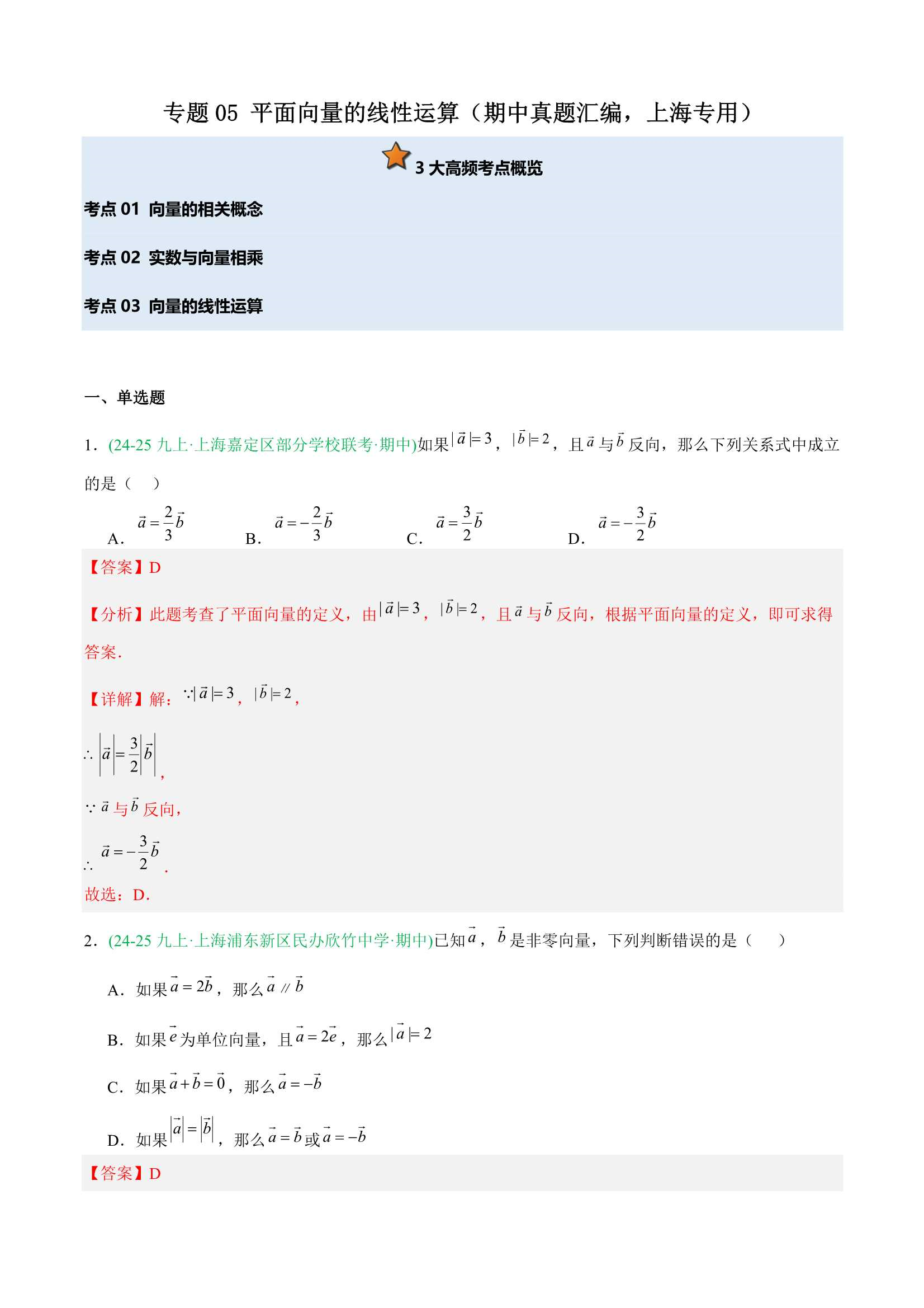 2025-2026学年上海九(上)数学期中真题分类汇编
