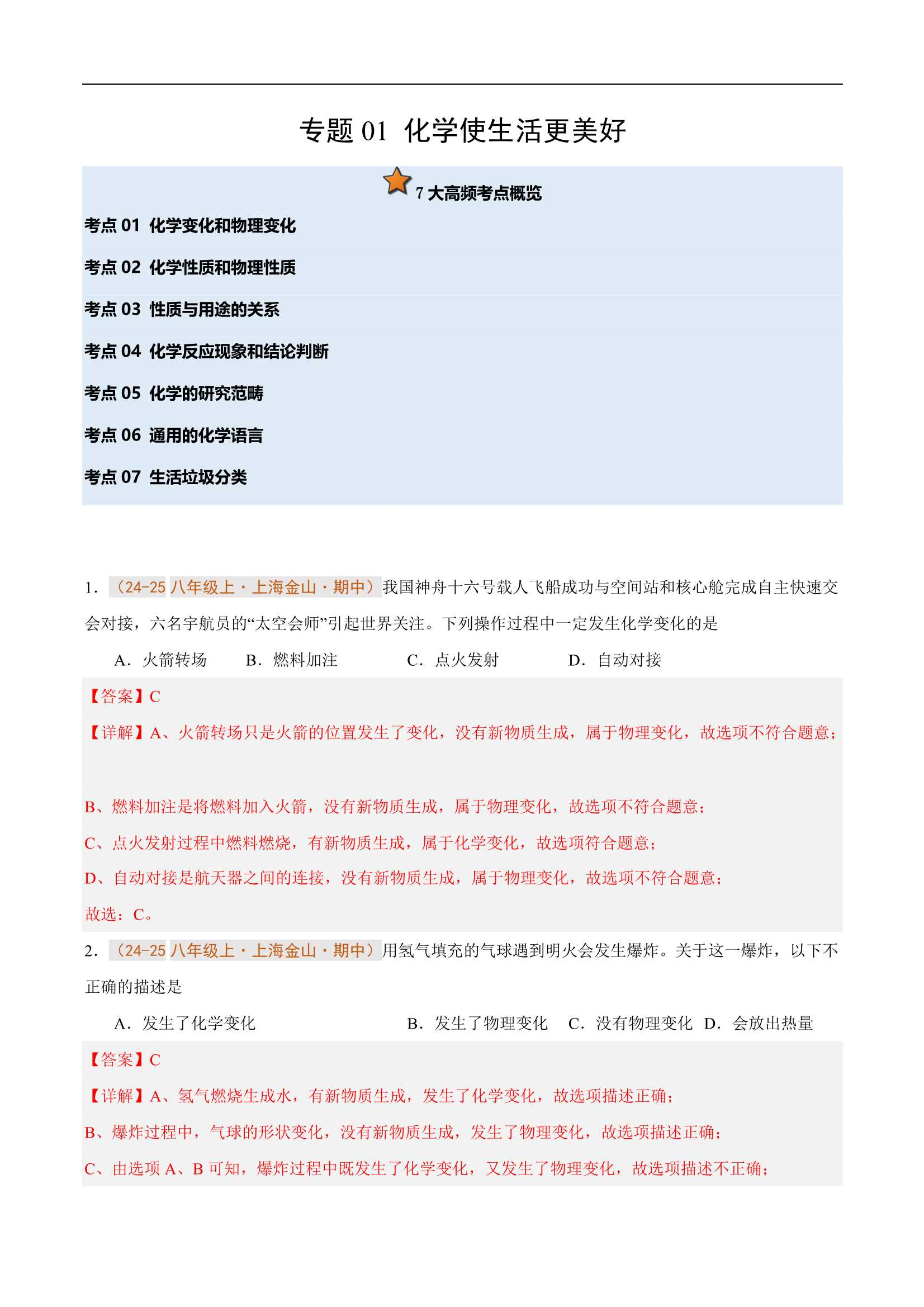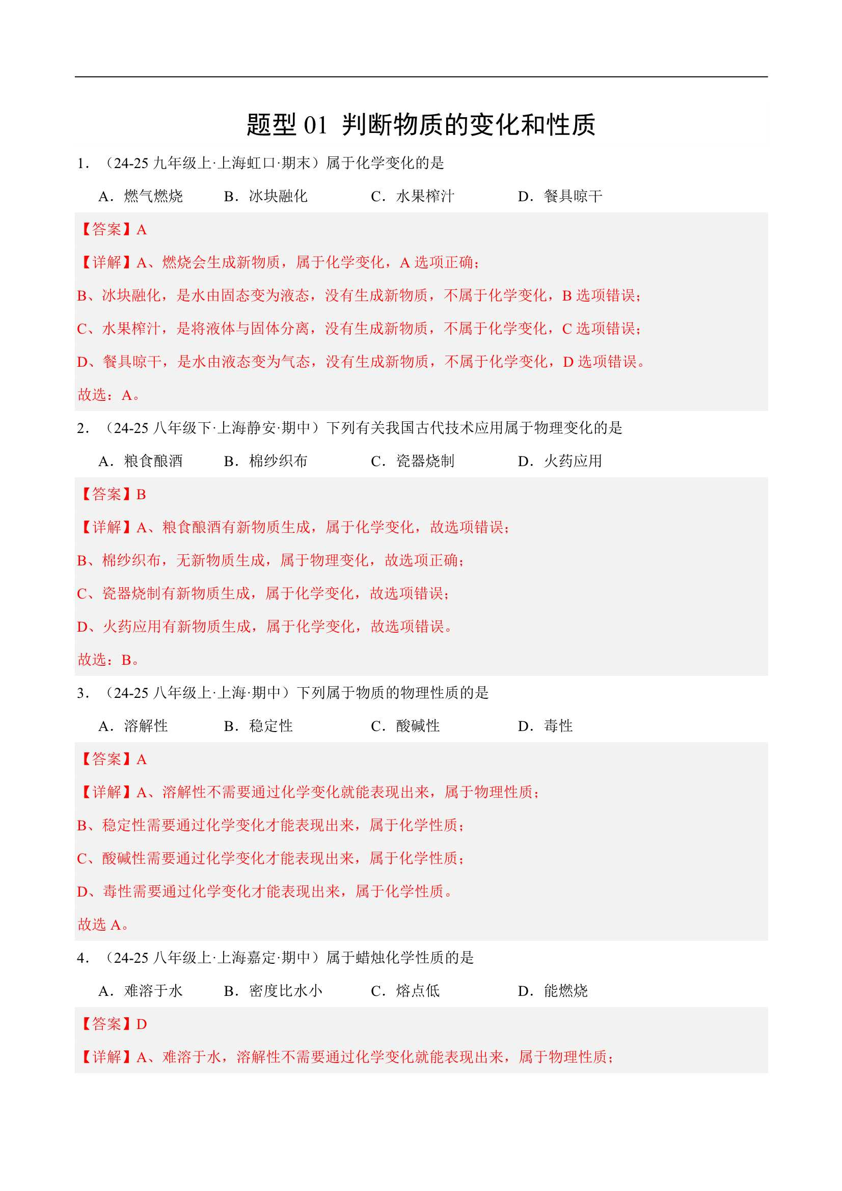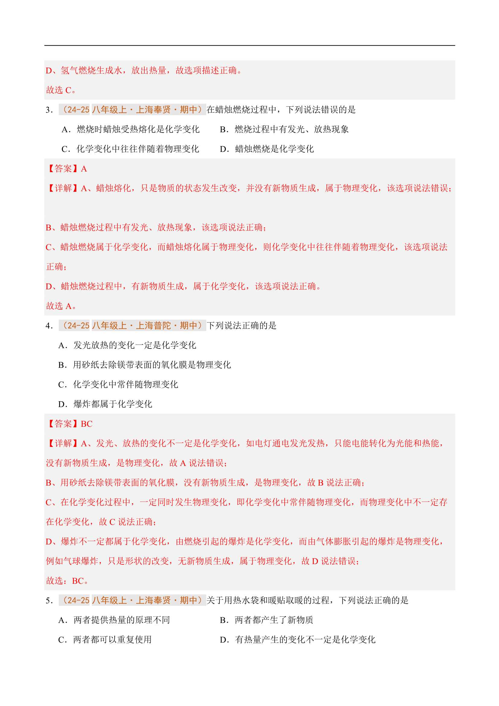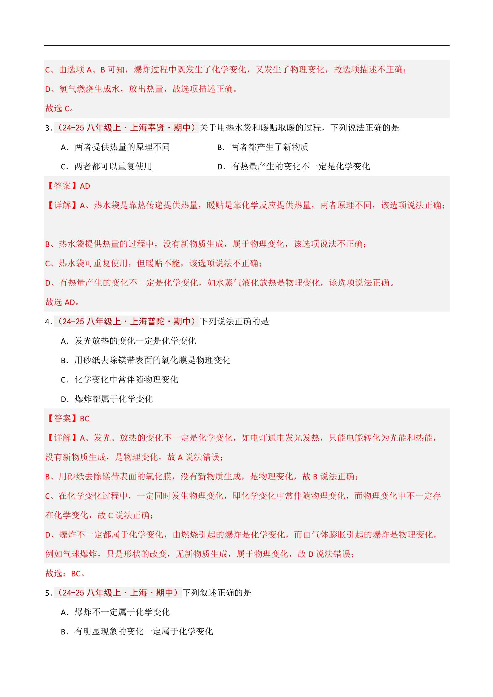 2025-2026学年上海八(上)化学期中真题分类汇编