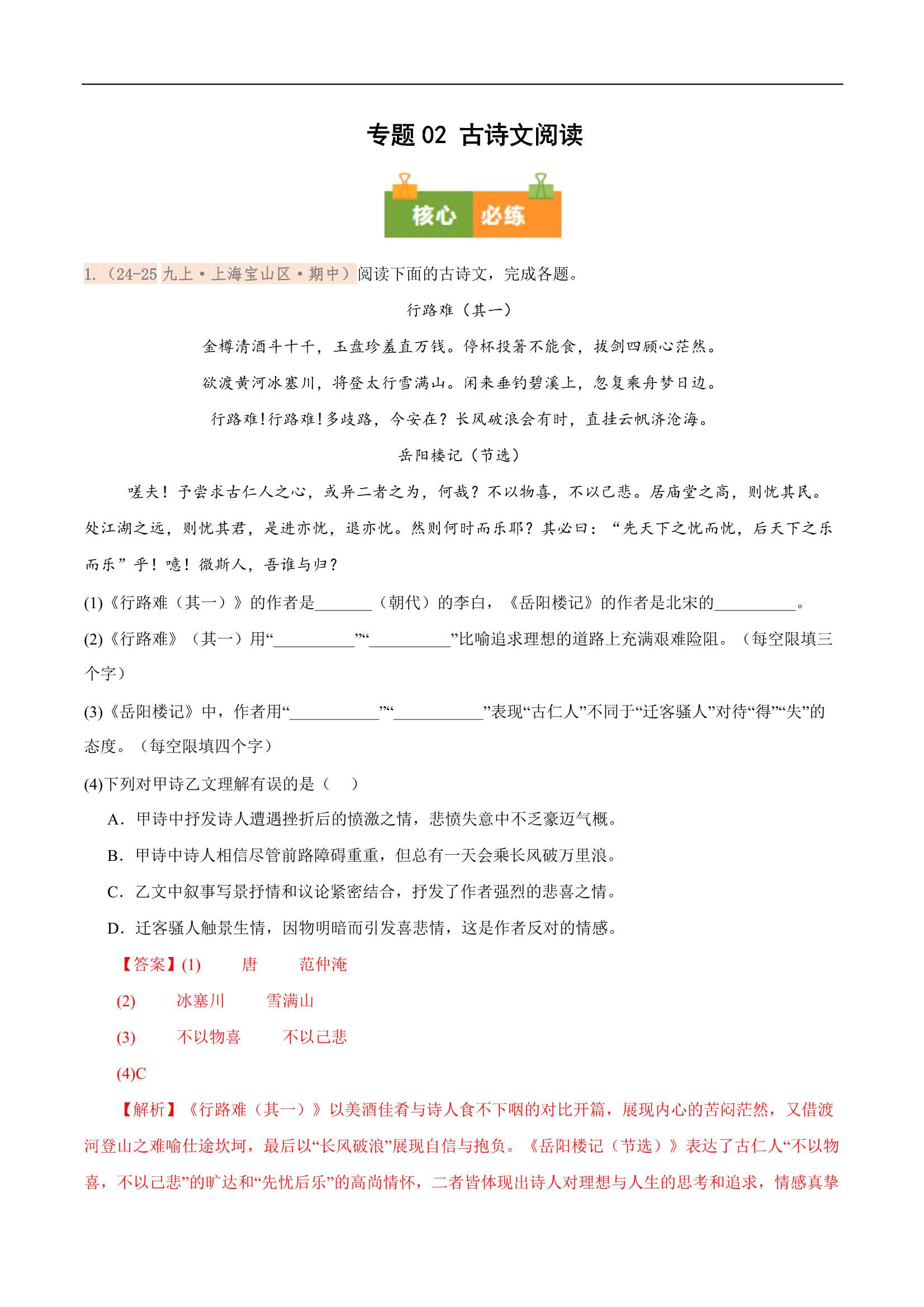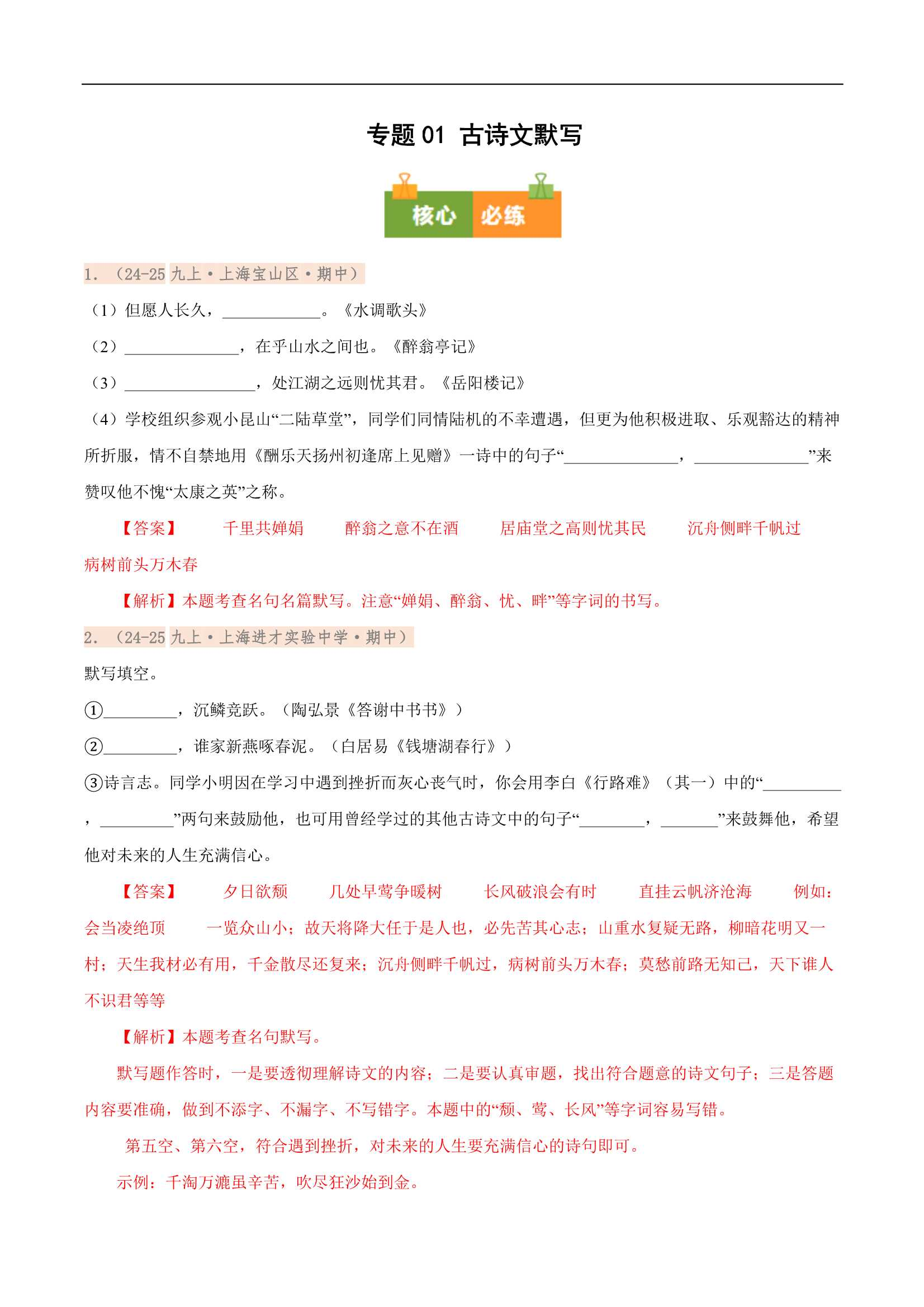 2025-2026学年上海九(上)语文期中真题分类汇编