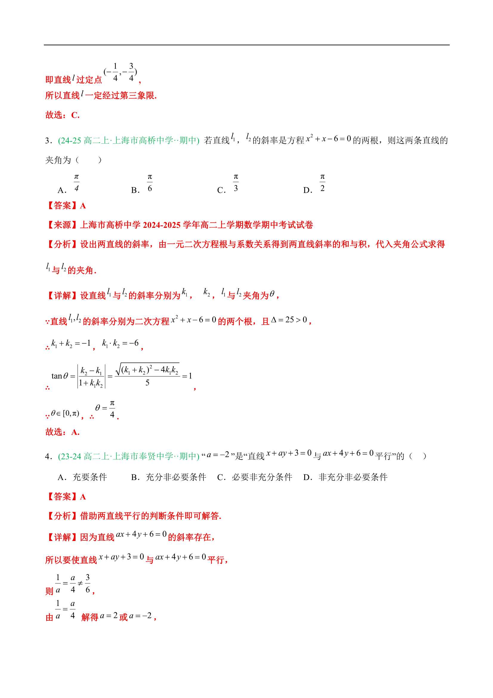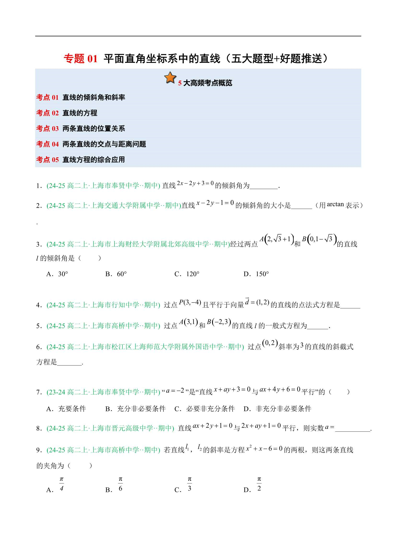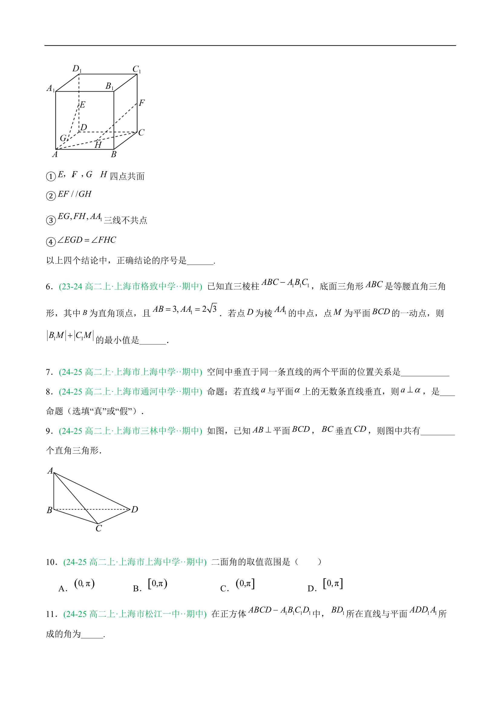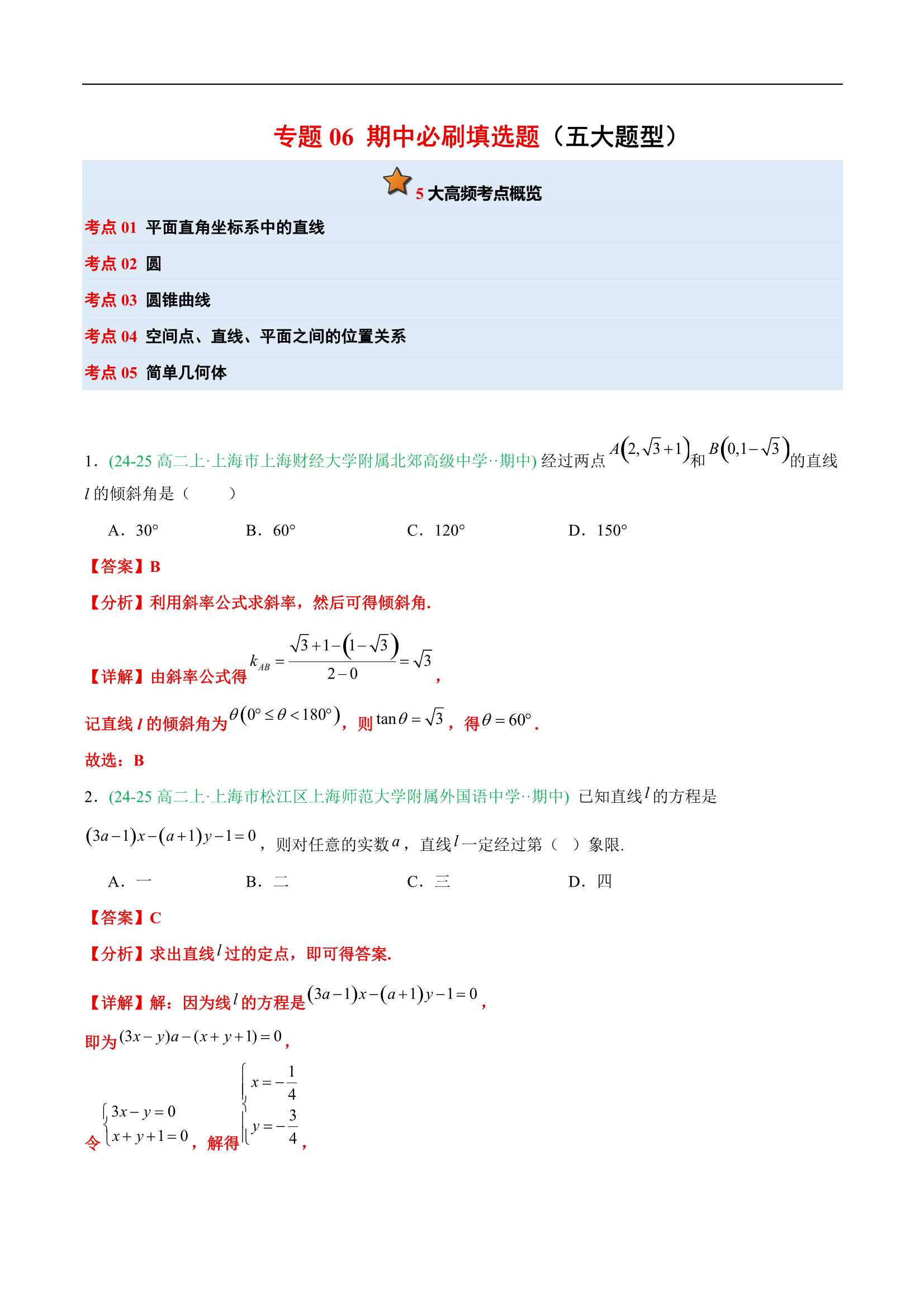 2025-2026学年上海高二(上)数学期中真题分类汇编