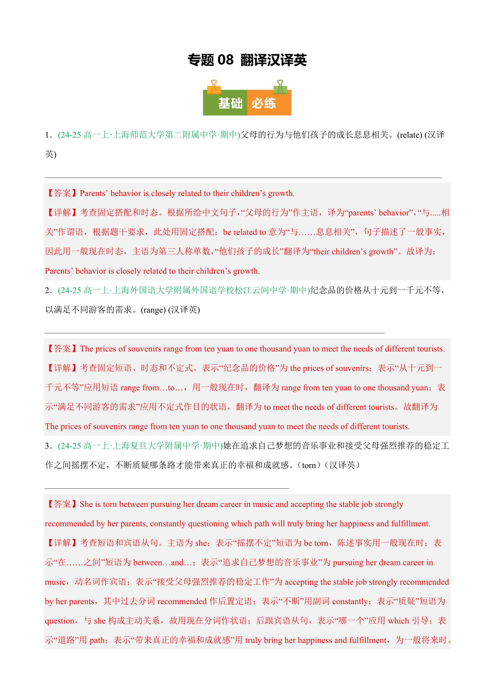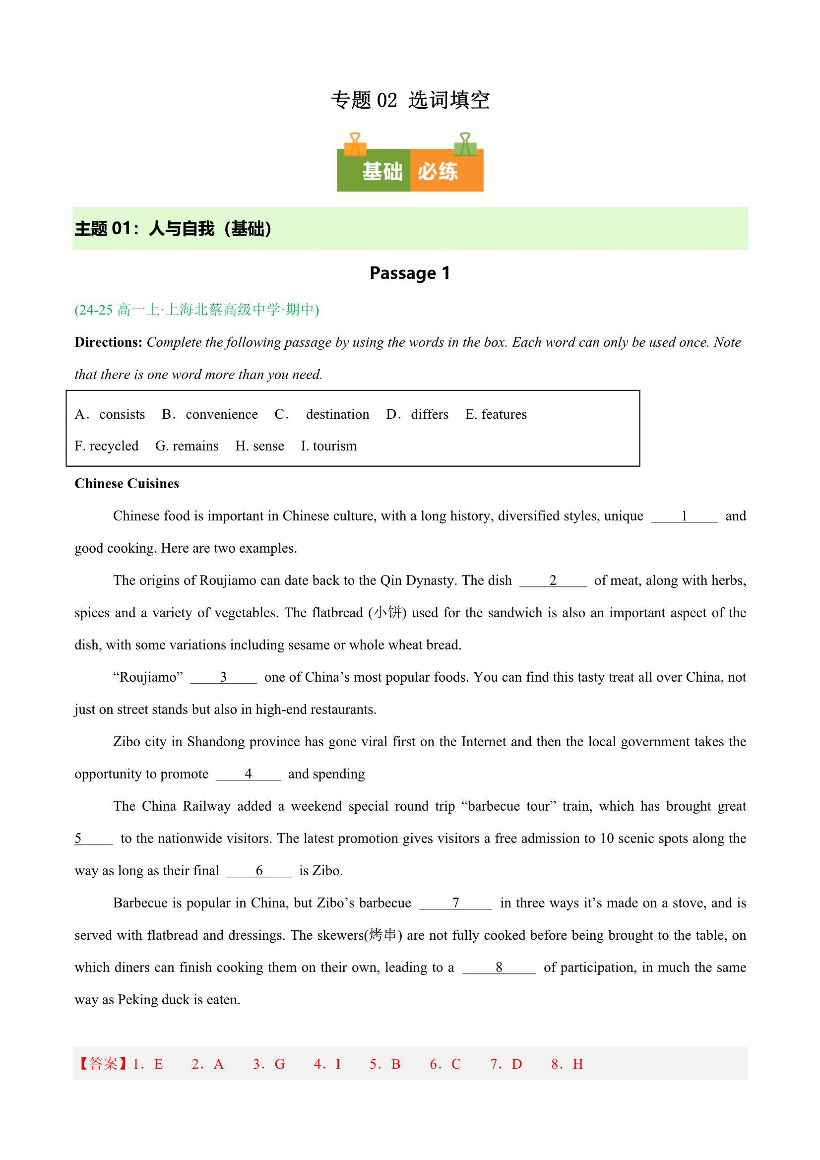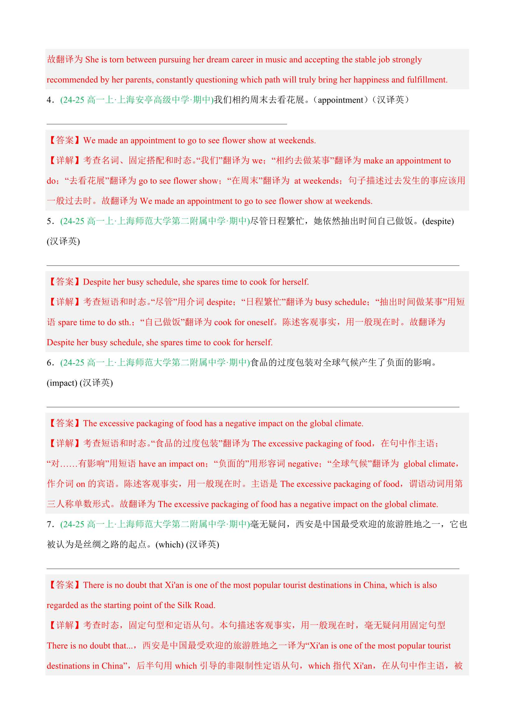 2025-2026学年上海高一(上)英语期中真题分类汇编