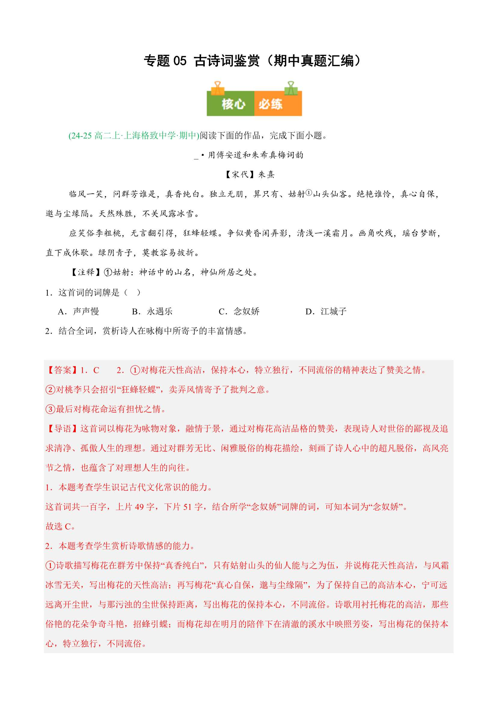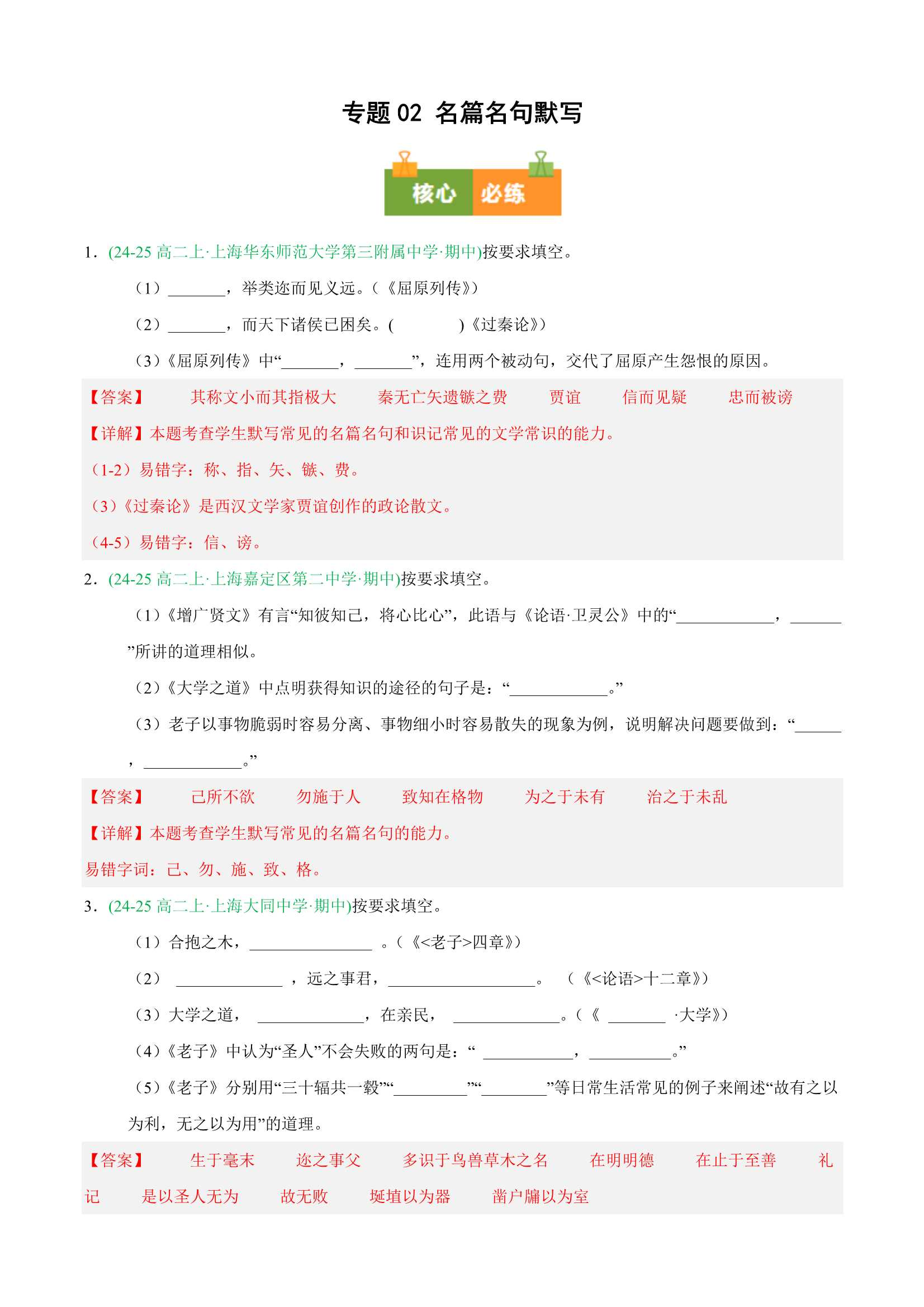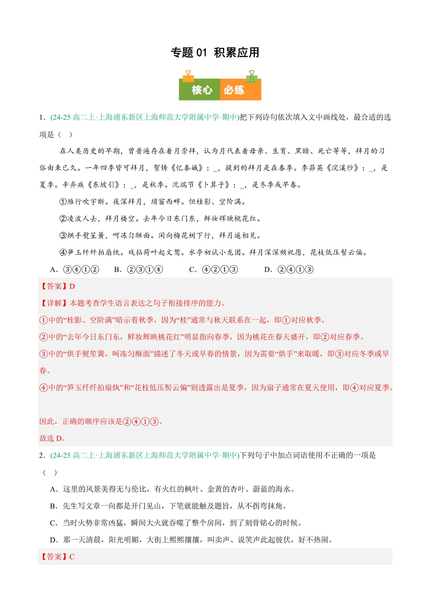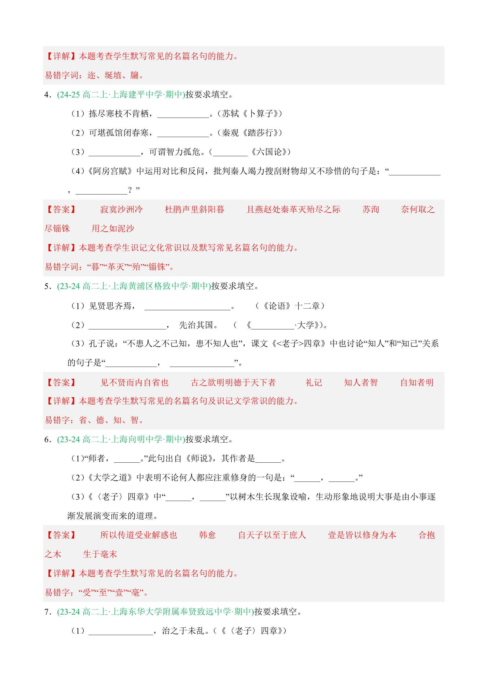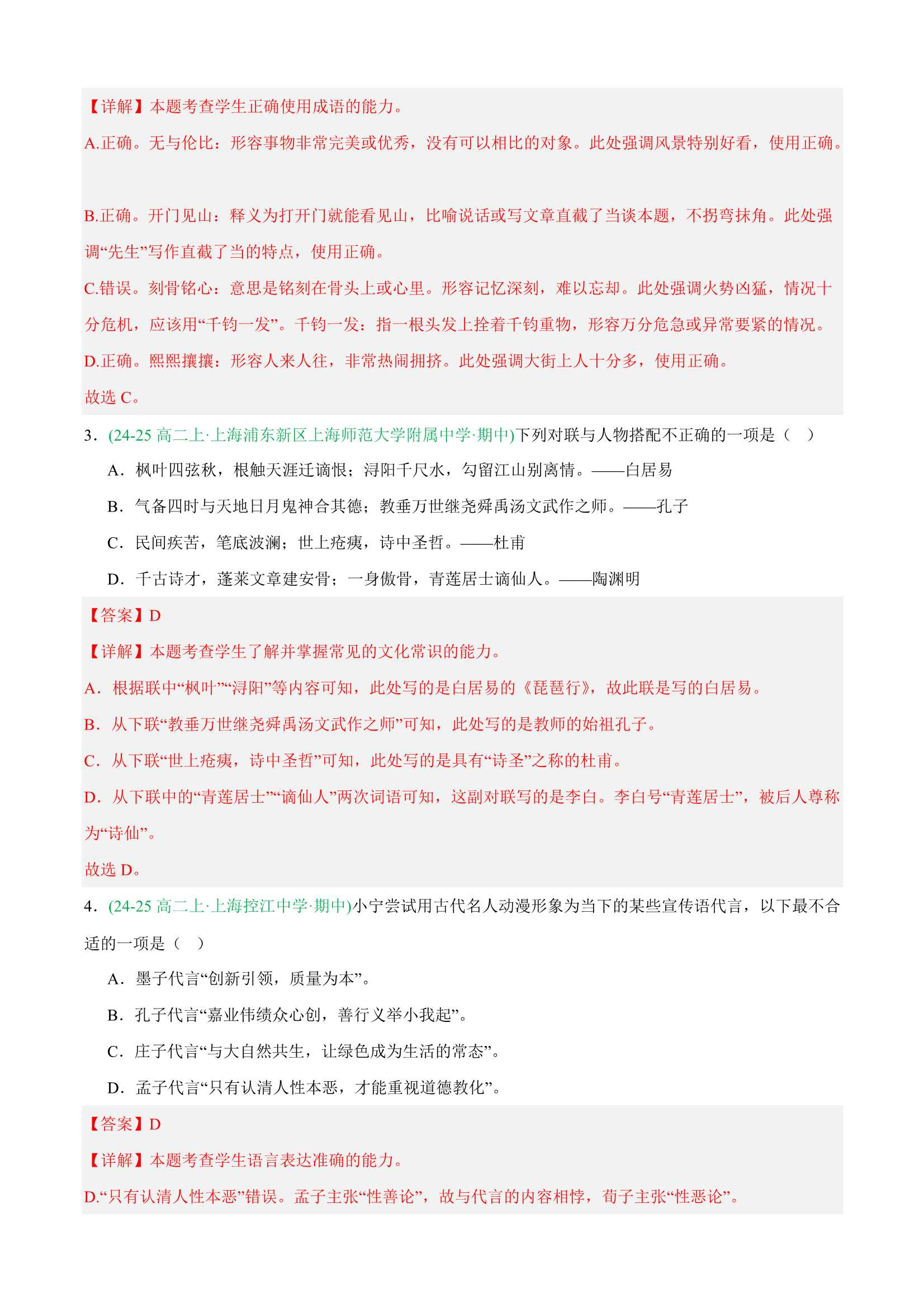 2025-2026学年上海高二(上)语文期中真题分类汇编